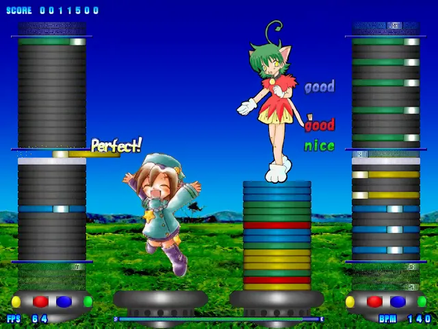 このゲームの難しさは、とにかくPerfectを出さないと相手に勝てないこと。いくらmissをしなかろうが、Perfectなしでは送られてくるチップは減らせないし、最後の%差でやられます。そして、記録が残るのもPerfectの割合。なのに、このゲームのPerfectといったら本当が判定厳しめ! 『ポップン』や『ビーマニ』の「GREAT!」とはわけが違います。例え単打ポチポチだろうが、同じテンポで淡々と押し続けるだけだろうが、普通にタイミングがズレてGood。ちょっとでも集中力が切れるとGood。よく狙ったつもりでもGood。一瞬でも手元が狂うとnice……。ぐあぁぁぁ~~! この非情な厳密さよ!